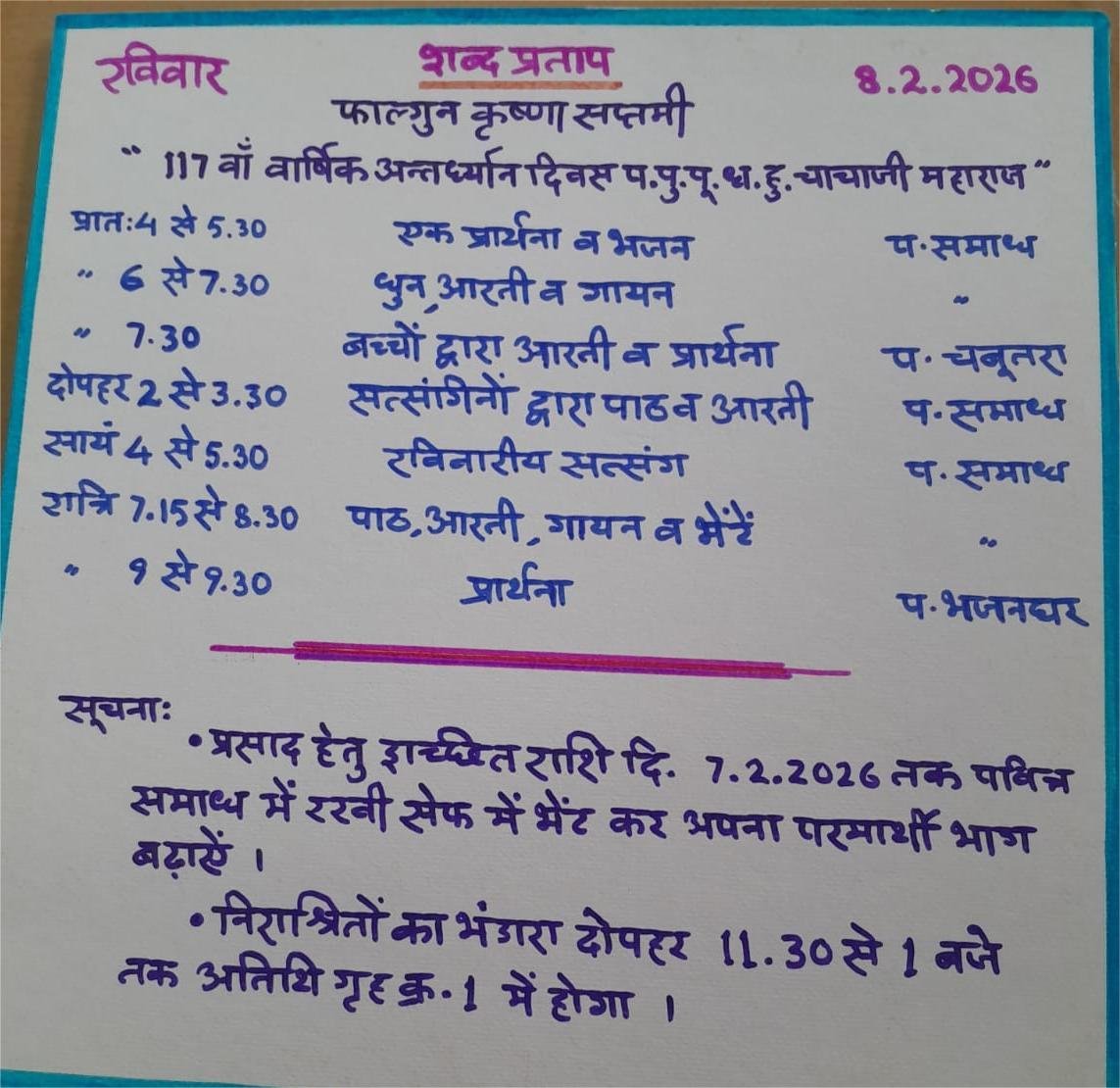 Shabd Pratap Ashram is based at Gwalior, M.P., India at the foothills of Gwalior Fort on its western side. It is situated at a distance of about 4 kms from Railway station and Bus stand. In the beginning there were about 50 followers, who were given land free of cost & they constructed their houses with only residential rights. With passage of time now three such colonies have developed having about 100 houses.